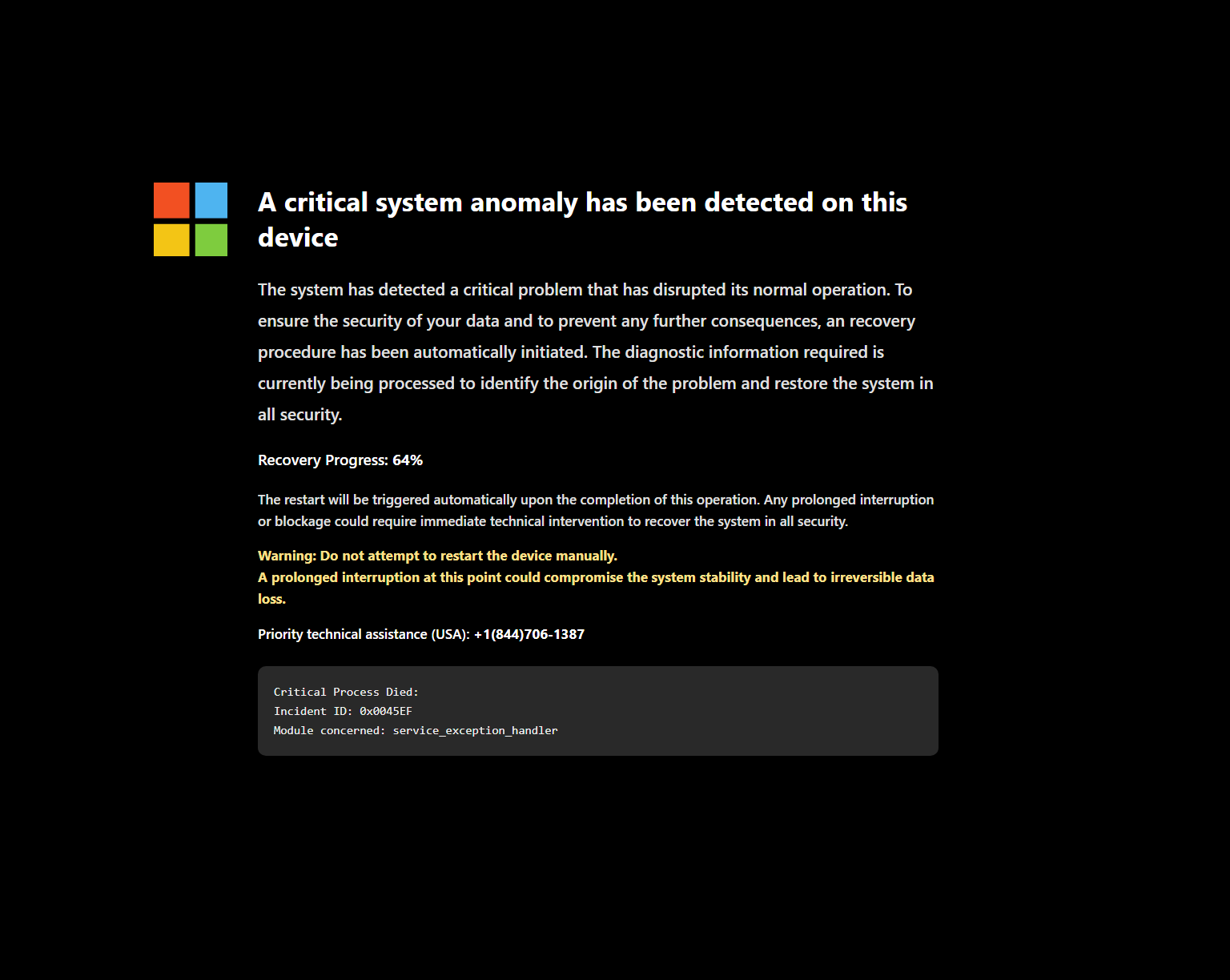 Contact support. Our engineer will guide you through the removal process over the phone. Your computer has been disabled. Defender SmartScreen now prevents unrecognized applications from appearing. Running this application may put your system at risk. Contact support +1(844)706-1387